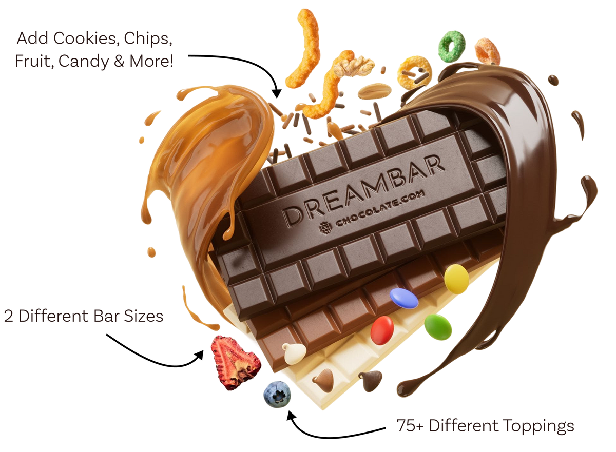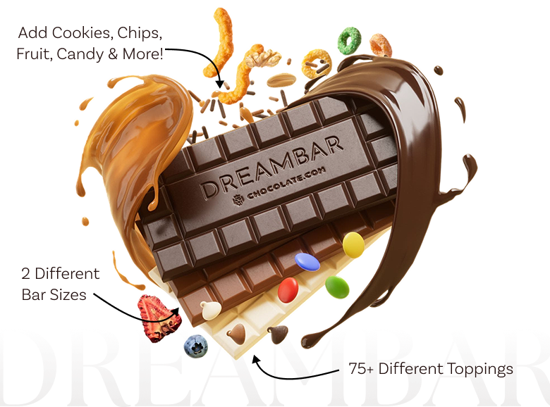 With our custom DreamBar™ experience, you can create your very own DreamBar™ of chocolate. Our builder will take you step-by-step and virtually show you what your DreamBar™ will look like!